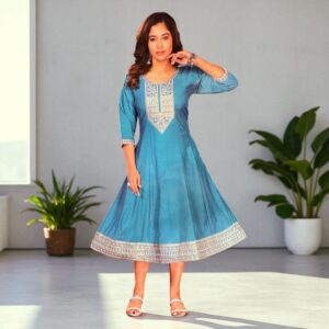 A vibrant brown skirt crafted from soft shimmer fabric, designed with a full flare for graceful movement and an eye-catching finish.