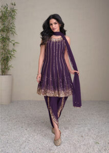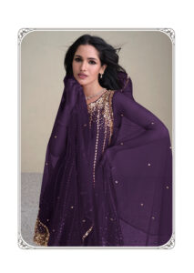 Champagne gold soft silk gown with a high neck and handwork on the shoulder, fancy sleeves, and detailed handwork on the waist and bottom for an elegant finish.