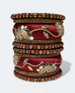 High-quality base adorned with lustrous pearl detailing and vibrant, handcrafted hanging flowers for a sophisticated yet playful look.