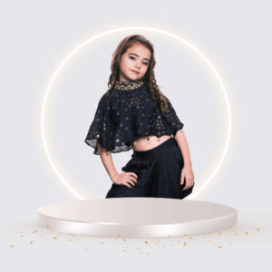 Elegant & Beautiful dark blue dhoti with sequence work fancy crop top with round sequence work neckline.