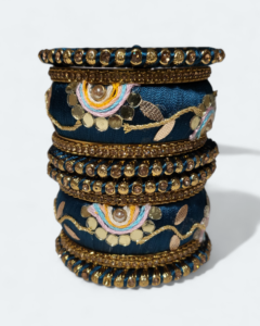 Work Style: One shoulder poncho with multi-colored print and sequin details