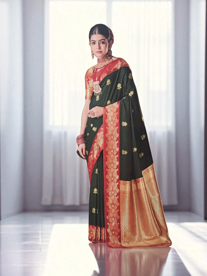 Crafted from premium soft silk, this saree features a beautiful combination of teal and pink that adds vibrance and elegance to your look.