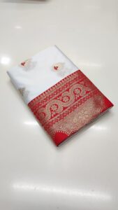 Elegant Katan Silk Saree with Stone Embellishments – A Touch of Glamour Premium Katan silk – renowned for its rich texture, glossy finish, and graceful drape. The fabric ensures comfort while maintaining an air of sophistication.