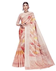 Premium Katan silk with allover flower design – renowned for its soft, lustrous texture and rich, luxurious feel. This fabric offers a subtle sheen and exceptional drape, making it a favorite for elegant attire