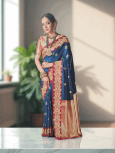 Crafted from premium soft silk, this saree showcases a soothing light green shade that adds a serene and elegant touch to your traditional attire.