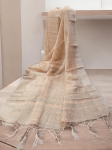 A navy blue soft cotton kurti with intricate gold and navy blue embroidery work, paired with matching pants. The outfit is complemented by a cotton silk dupatta, adding a touch of elegance. Perfect for office wear, it combines style, comfort, and sophistication.