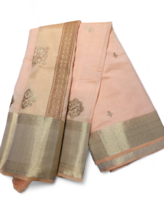 Adorned with intricate silver jari work, it shimmers with a subtle, refined sparkle that catches the eye without overwhelming. Ideal for weddings, upscale events, and festive celebrations, this saree promises to make every moment memorable.