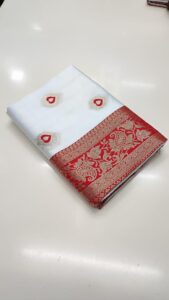 White And Red Silk Saree Original price was: $189.00.Current price is: $89.00.